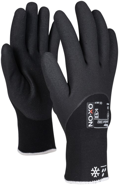 OX-ON Winter Comfort 3302 är den extra varma, vattenavvisande vinterhandsken för arbete i kalla områden som kan vara våta. Handsken är välisolerad och säkerställer värmehållning med perfekt fingerfärdighet och flexibilitet, t.ex. för arbete med byggnadsställningar eller som snickare/murare. OX-ON Winter Comfort 3302 är tillverkad av polyester och akryl, vilket gör denna vinterhandske åtsittande och bekväm samtidigt som den skyddar dina händer från värmeförlust. Knog doppad och belagd med sandig nitril på handflatan, på tummen och upp till knogarna. Det ger ett oöverträffat och säkert grepp.